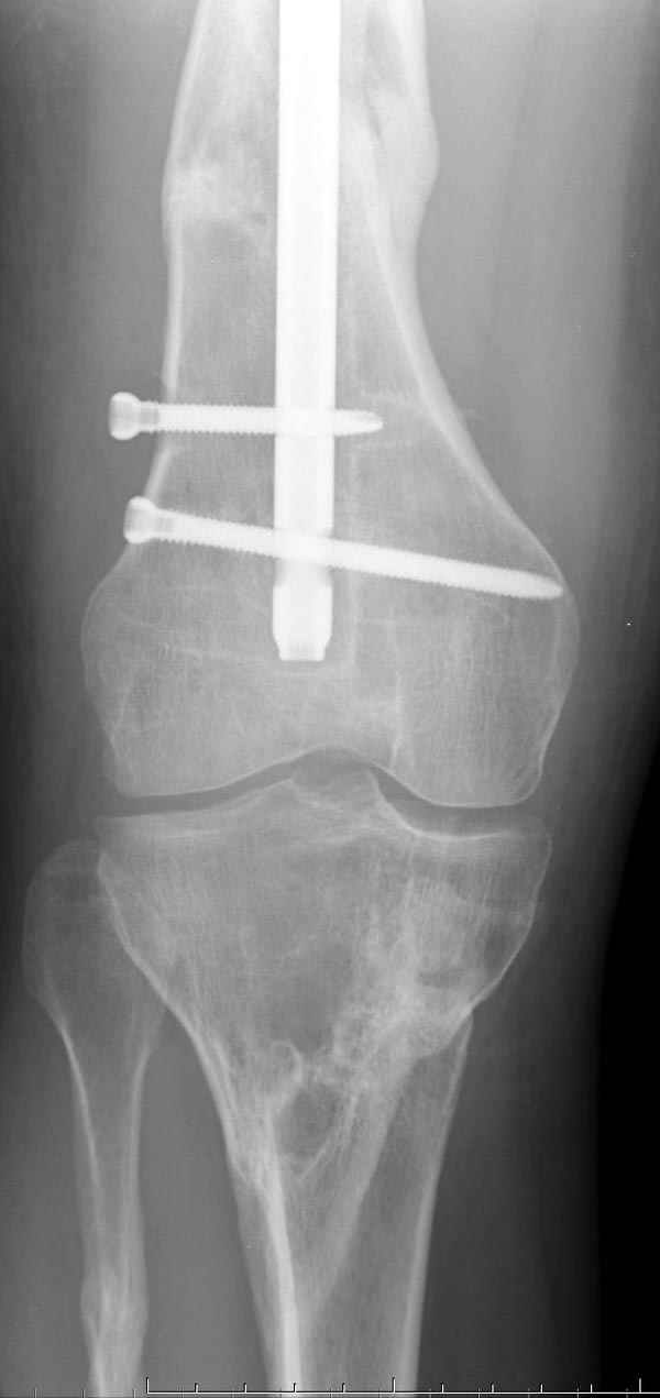 Учитывая, что на представленной ренгенограмме перелом сросся, я думаю достаточно будет такая импровизированная интрамедуллярная фиксация.