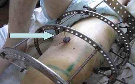 Возможно, избежать подобных осложнений Вам поможет "Атлас проведения чрескостных элементов", который сможете скачать с сайта нашего института: http://www.aotrf.org/site/rekomend.html
