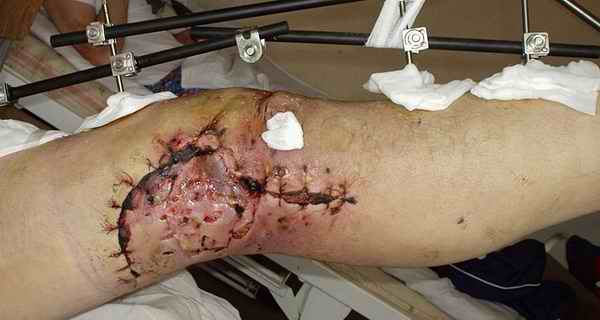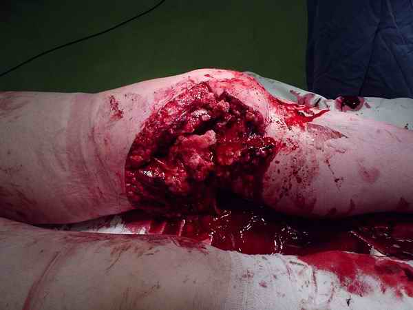 из Больной 48 лет, соматически здоров, около 3 недель назад получил тяжелый открытый перелом внутренних мыщелков бедра и большеберцовой кости. Травма производственная - наехал бульдозер.