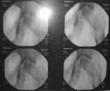Положили в больницу, месяц лечился антибиотиками. После выписки боли сохранялись. В декабре 2005г. направлен на эндопротезирование в Новосибирск. В дороге появилась гиперемия сустава. В Новосибирске выявлен остеомиелит головки, гнойный коксит. Выполнена резекция головки. Проведено лечение коксита. Сустав вскрывался из трех доступов: задний, латеральный и паховый. Состояние улучшилось. На всех послеоперационных рубцах сформировались свищи с гнойным отделяемым. В настоящее время локальный статус прежний. Ходит на костылях, не наступая на ногу.