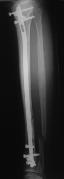 It is often a problem nailing upper tibial fractures. There is a tendency to apex anterior angulation as well as valgus alignment. Your entry point on the AP view seems to have been kept the same. How did you manage to maintain alignment? Any intra-operative pictures of your technique?