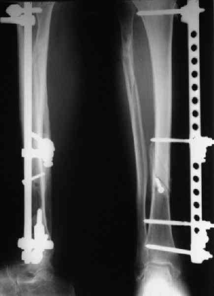По крайней мере, клиническое наблюдение не выявляло более длительной хромоты, пользования костылями и пр., что отражало бы нестабильность или несостоятельность фиксации.