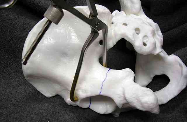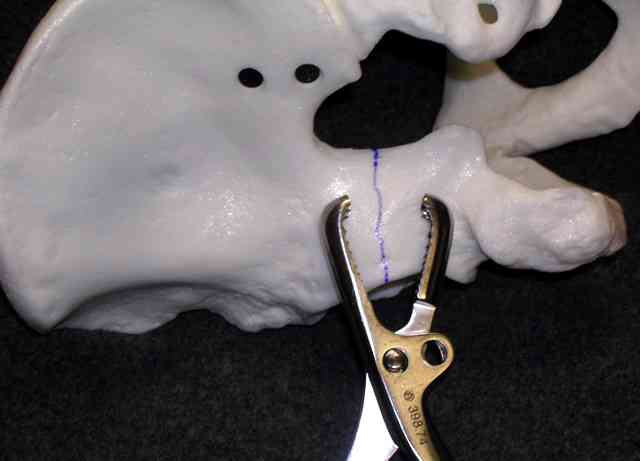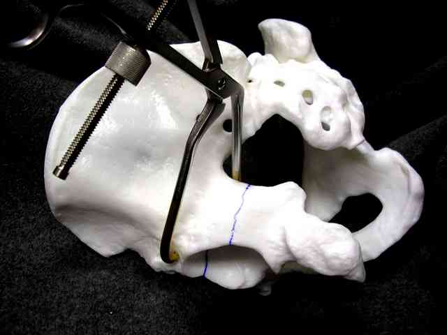Yuk, the Farabeuf clamp...a selective dorsal clamp applied using cortical screws previously inserted into the best balance zone of the posterior column... sometimes helpful, and always in the way.