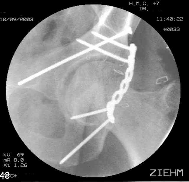 The unstable caudal segment is secured by the lower 2 plate screws and the AC medullary screw... always assure that your fixation is sufficient to defeat the instability... part of your prop plan... but assure it before you close... it¹s your last chance... you shouldn't have to be pushing on the hip in contorted ways to determine your fixation stability...you can if that makes you 'comfortable'.