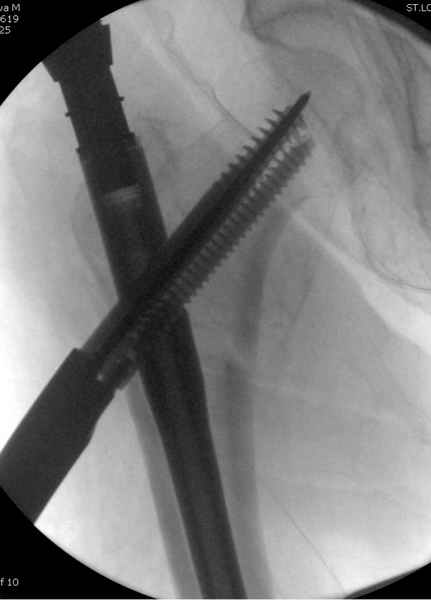 При отсутствии таких конструкций, другим альтернативным методом фиксации можно было рекомендовать короткий DHS с двумя шурупами открытым методом, а в диафиз ретроградний штифт.