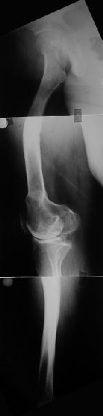 Обратилась дама 57 лет с намерением протезировать коленный сустав. Имется грубая осевая деформация (см. рентгенограммы).