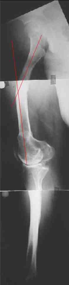 ротационная деформация, плюс к этому - деформация голени. Однозначно в таких случаях, в отличии от возможностей при эндопротезировании ТБС необходимо выполнить корригирующие остетомии на двух уровнях. Что касается сгибательно установки мыщелков бедра - думаю, что это не является проблемой, особенно если на операции будет испрользован заднестабилизированный протез. Относительно вальгуса - все не так однозначно - возможно, что деформация слегка преувеличена за счет проекционной установки из-за ротационной деформации. Поэтому планирование операции необходимо будет делать только после коррекции деформации.