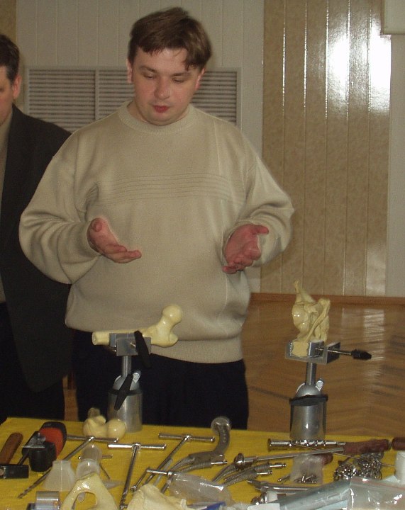 Уважаемые коллеги! 5-6 октября в МОНИКИ под председательством проф. В.П. Волошина прошел II образовательный курс школы ортопедической хирургии им. проф. О.Ш. Буачидзе. Тема курса: "Цементное эндопротезирование тазобедренного сустава". Помимо планирования и собственно оперативной техники большое внимание было уделено последним сведениям по цементам (доклад проф. Н.С. Гаврюшенко - зав. испытательной лабораторией ЦИТО) и биокомпозитным материалам для замещения дефектов костной ткани (доклад В.Е. Формазюка - гендиректора холдинга IKVAA). Под патронажем последнего была организована выставка продукции для ортопедии чешской фирмы БЕЗНОСКА и немецкой "AAP". Мне лично понравился "цемент" для заполнения полостей, который вводится стандартным шприцом под укрепляющее кольцо и в течении двух-трех месяцев прорастает костью. Культурная программа включала посещение гостевого дома посольства Чехии - пиво и кнедлики. Много писать про это не буду, чтобы не будить на форуме черную зависть. Было все бесподобно! Еще раз огромное спасибо организаторам. Юрий Алексеевич Булахтин < | >