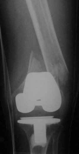 The external fixator very close to the knee prosthesis till such time that we get good union!