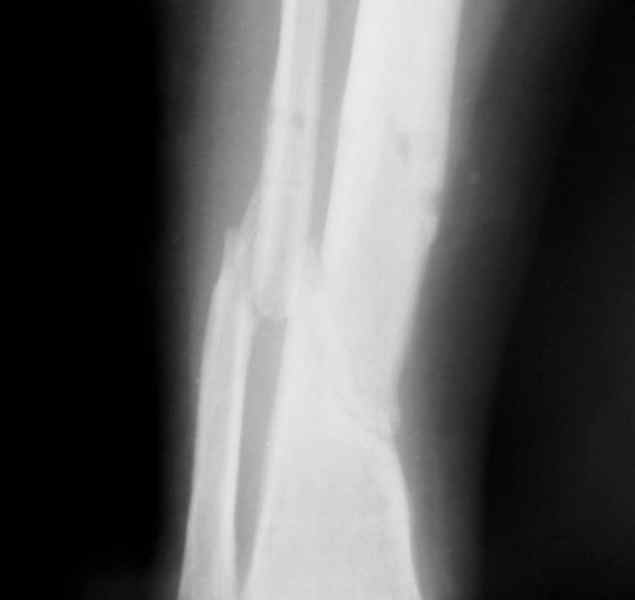 "Кстати на представвленных рентгенограммах в аппарате есть спица с напайкой, проведённая проксимально перелома через обе кости..."