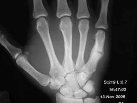 Планируется выполнить остеосинтез III и V пястной кости мини-аппаратом РНЦ "ВТО", срок фиксации 1 - 1,5 месяца.Гарантируется полное восстановление размеров и формы пястных костей, при соответствующем ЛФК - функции.