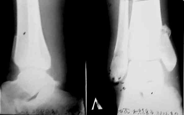 Доброго времени суток,коллеги! Вчера обратился на консультацию 22-летний больной. Травма 26.09.06. 30.09.06 оперирован. 30.11.06 Гипс снят снимки после снятия гипса представляю.