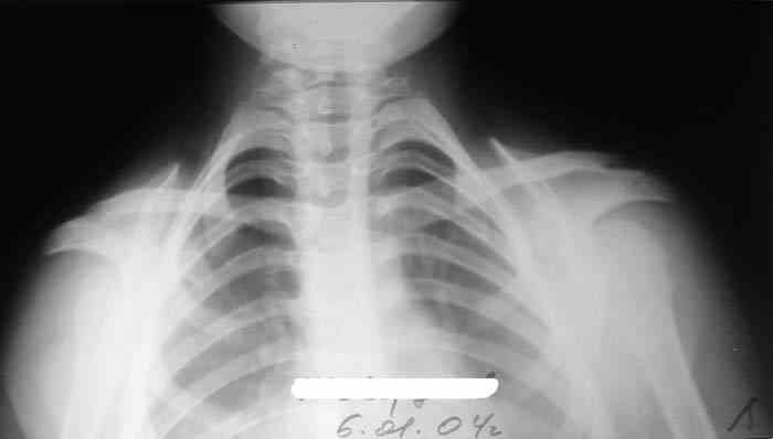 Наличие ключиц на прямом снимке, снимает диагноз врожденного отсутствия ключиц.