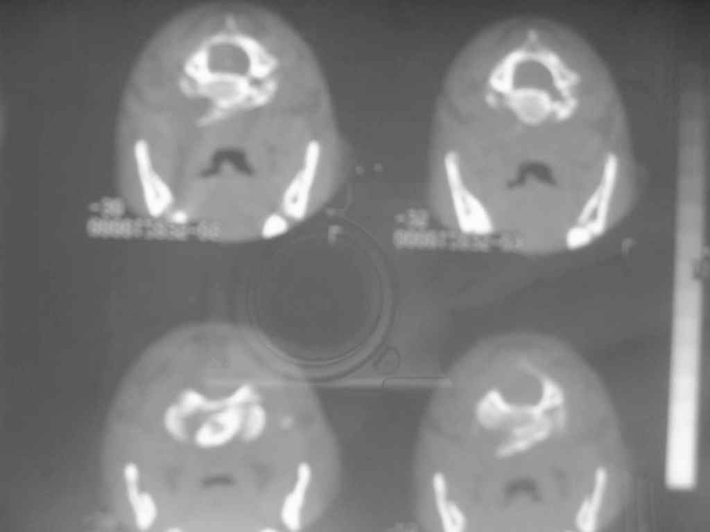 на сколько я смог разглядеть по представленным рентгеннограммам у Вашего пациента имеется т.н. Базальный, опрокидывающий трансдентальный подвывих атланта 3-ст. АКДСН-3.(по В.А. Моисеенко)