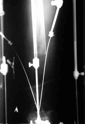 Этот стиль мне полностью приемлем и понятен. Наверно я бы поступил также. Но статистика упрямая вещь. Сколько у тебя или у другого врача опыта по замещению дефектов бедра? У меня за 25 лет работы 3, и еще около 15 случаев удлинения бедра. Случай у тебя очень сложный. Если Вы выбираете Илизаровскую методику то надо на в/з хорошую дугу, не менее 4-5 спиц с напайками.Стержни хороши когда кость не измучена и на 2-4 месяца. Здесь аппарат на 6-8 месяцев. Если есть желание я только за, и