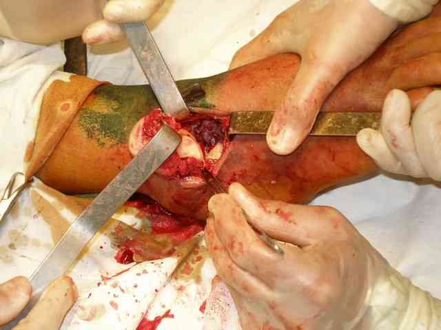 Можно убрать таранную кость, и поместить в образовавшуюся полость либо бусы из цемента с антибиотиками, либо вылепленный прямо по форме тарана спейсер. Целесообразность этого будет определяться распространенностью гнойного процесса. Может быть, будет достаточно только удаления тарана.