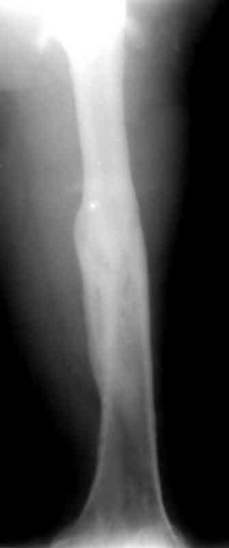 Больная начала давать нагрузку на конечность через 4 мес после операции (в месте перелома