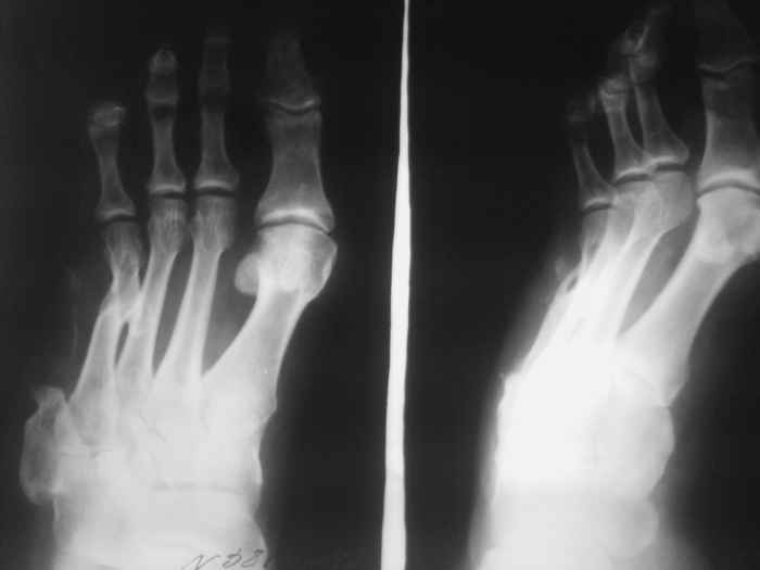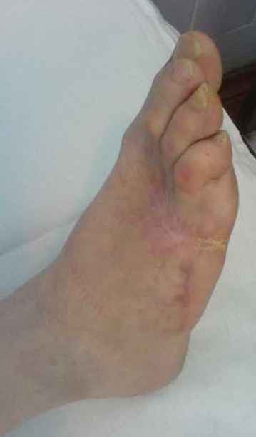 Мужчина 50 лет. Оперирован 2 года назад. Удален 5 луч по поводу инфицированного открытого перелома.