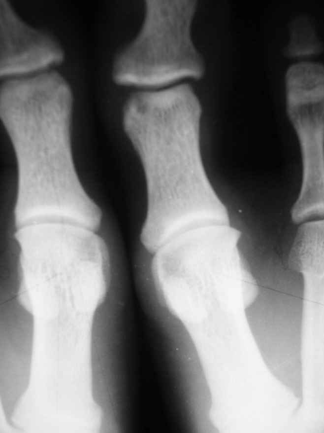 На представленных снимках рентгенологическая картина АКК не соответствует - в первом случае рентгенологическая картина (учитывая центральное расположение ) более соответствует солитарной костной кисте м.берц. кости, а в фаланге - кистовидная перестройка, во втором случае - гигантоклеточная опухоль