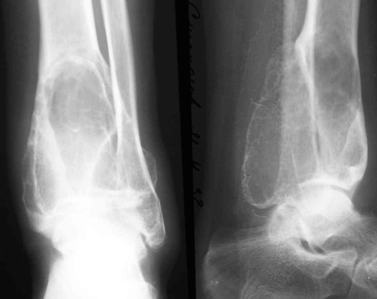 2-Пациент С.,32 лет,аневризмальная костная киста левой большеберцовой кости (Рис. 3,4), проходит лечение.