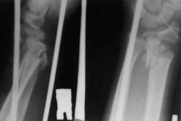 Через 3 дня переведен в травм.отделение. Мнения коллег о дальнейшей тактике разделились: накостно с трансплантацией или ЧДО аппаратом Илизарова, с целью добиться, хотя бы относительно удовлетворительного стояния.На сегоднешний день выраженный болевой синдром, больше слева.Раны на предплечье заживают первично.