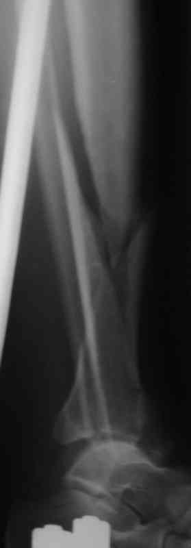 > метаэпифизе. Через пятку? и возможно диафизарный перелом тоже