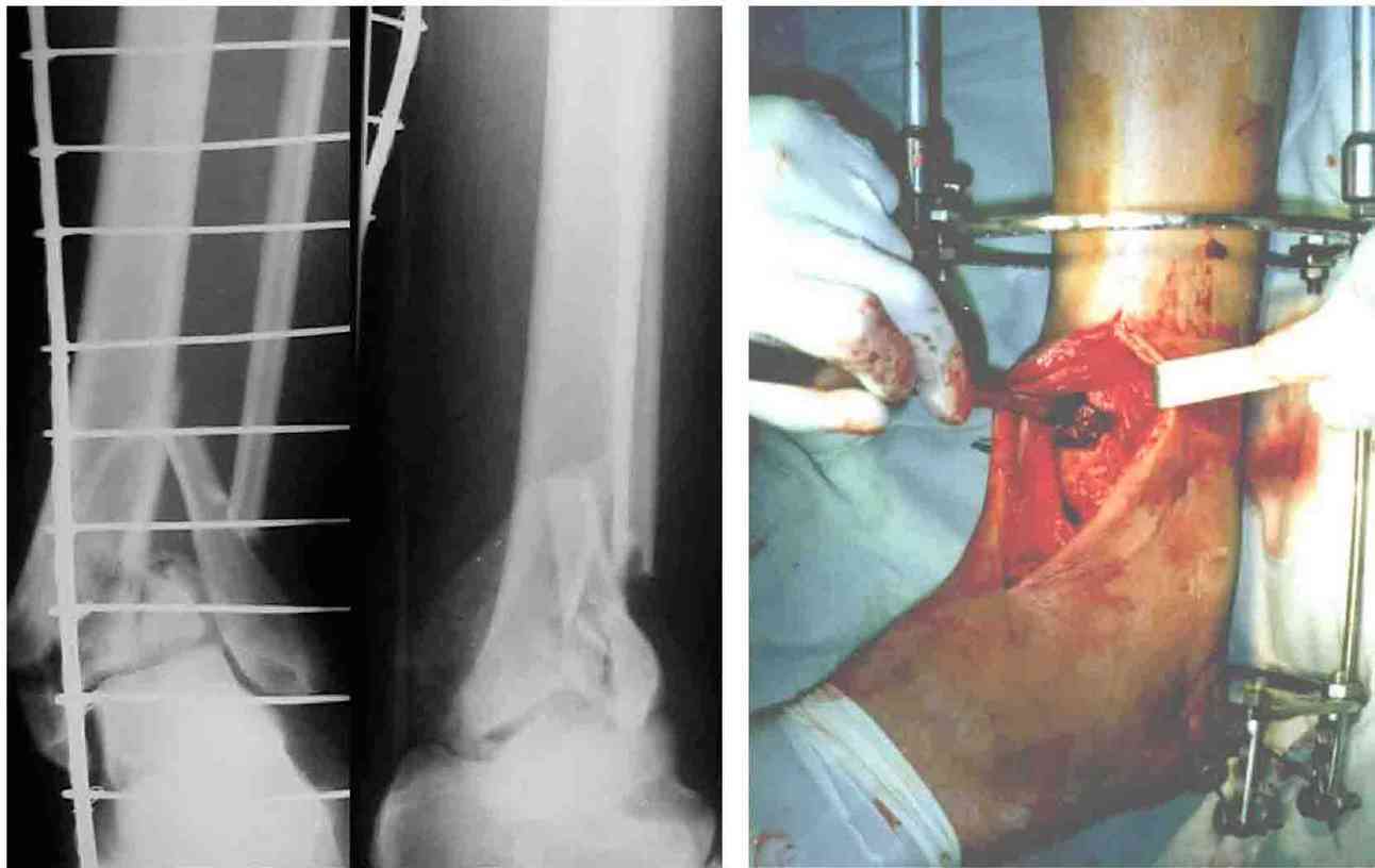 В принципе нужно применить методику котрой вы лучше владеете и есть технические возможности, но по моему мнению перелом классический для Илизарова.