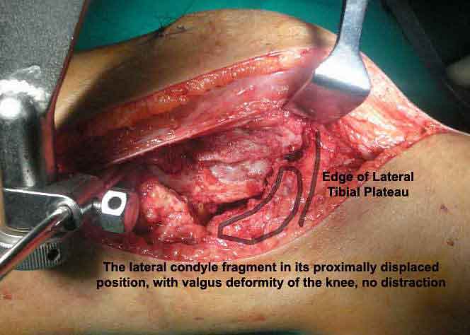 This brought the lateral condylar fragment into a position that seemed to be reasonably well aligned, but showed up a bone gap.
