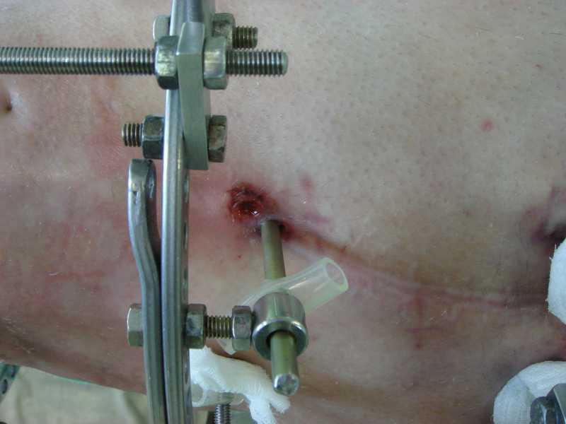 > Мы демонтировали спице-стержневой аппарат, рассверлили