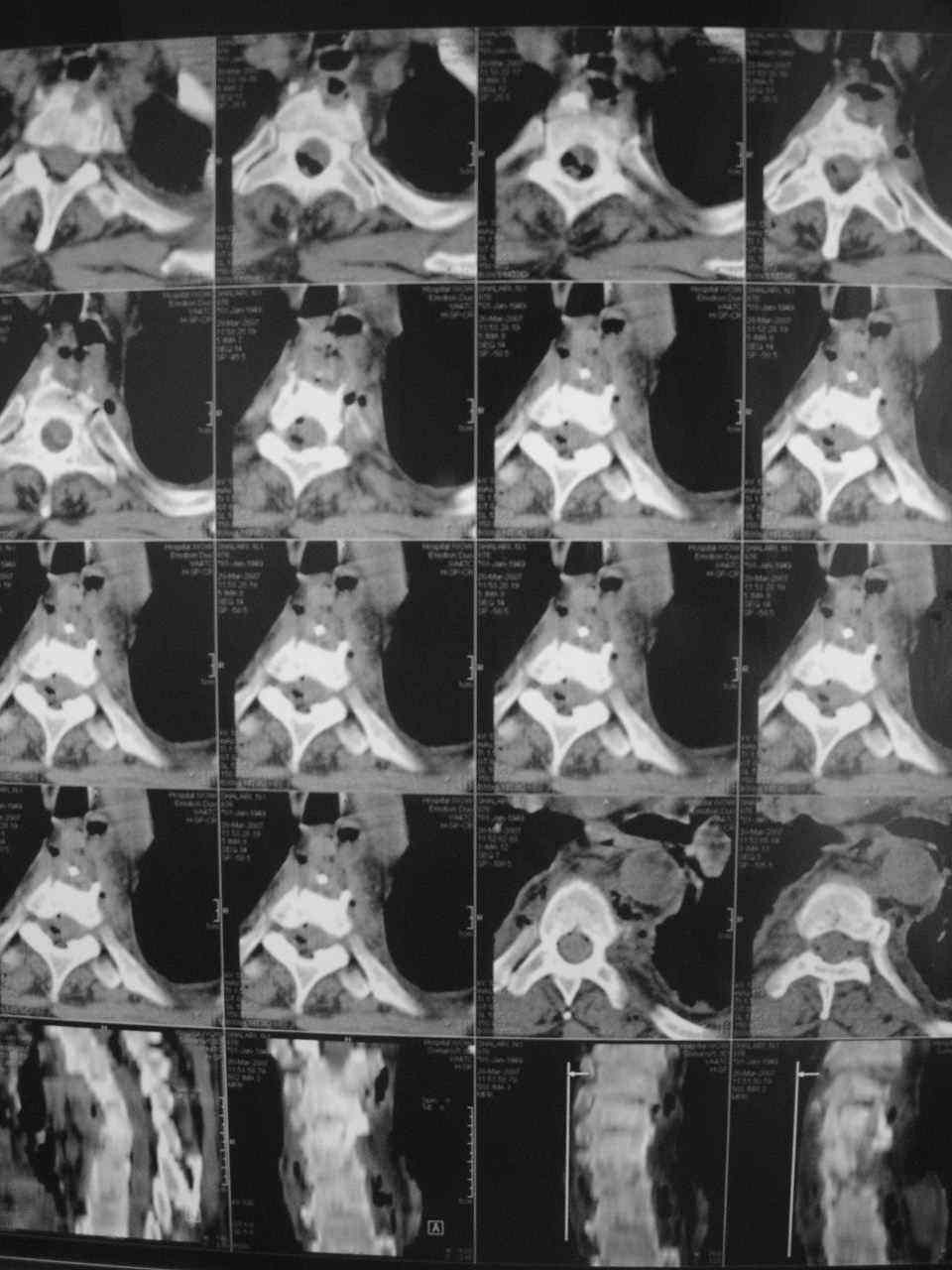 При поступлении - ограничение движений в грудном отделе позвоночника, кифоз, болезненность при пальпации паравертебральных точек спины, симптомы D=S, парезов не отмечалось. При поступлении общеклинические и биохимические анализы крови и мочи. Все в пределах нормы. Можно отметить только L- 9,9 тыс. Назначенное рутинное лечение остеохондроза с включением НПВС было без эффекта. На фоне нарастающего болевого синдрома, 15. 03.07 г наступила нижняя параплегия, нарушение функции тазовых органов по типу острой задержки мочи. Больной переведен в ОРиТ, где были выполнены дополнительные методы обследования: 1. Rо-графия грудного и поясничного отделов позвоночника - деструкция с клиновидной деформацией Th5-6. Закл.: застарелый компрессионный перелом? Мт? 2. УЗИ внутренних органов - внутренние органы без патологии. Простата визуализируется с трудом. Края неровные, размеры 6,2х4,8х5,3 см., структура неоднородная. Объем мочевого пузыря - 600,0 мл. Заключение : Хр. б\к холецистит, Аденома простаты. Сч простаты? 3. ФГДС - заключение: Эрозивный дуоденит. Атрофический гастрит. 4. Рентгенография легких - без патологии. 5. Ретроспективный пересмотр флюорограмм за последние 3 года - без патологии. Повторно выполнены клинические и биохимические анализы крови. Заслуживает внимания только нарастание лейкоцитоза (L - 14,0П-4,С-68,Л-64,М-5, СОЭ - 65 мм.\ч). Ликвор: цвет - светло-желтый, ксантохромия- наблюдается, прозрачность - мутная, нейтрофилы - 95%, лимфоциты - 5%, цитоз - 588х106/л, белок - 9,9 промилей. В осадке - I пробирка: L- в большом количестве, Э- неизмененные, в большом количестве,Э- измененные, 1-3 в п\з. II пробирка: L - в небольшом к-ве, Э - неизмененные, 7-10 в п\з, Э- измененные, 2-3 в п\з. К ранее назначенному лечению добавлены инфузионная терапия, антибиотики ( цефтриаксон, ципринол), гормональная терапия (дексаметазон 8,0 мгх2 р\д), гепарин, диуретики, посиндромная терапия. Осмотрен урологом, онкологом. Достоверных данных за наличие Мт. не установлено. В связи с неясностью диагноза, был направлен на КТ в Тираспольскую РКБ. 21 марта больной скончался. На вскрытии - внутренние органы без признаков какой-либо патологии. При разведении волокон передней продольной связки в проекции Th4-6 была вскрыта гнойная полость с наличием деструкции тел указанных позвонков, с прорывом гнойника в позвоночный канал. Дуги и отростки позвонков - без признаков поражения. Гной сливкообразной консистенции, зеленоватого цвета. Гнойных затеков в мягких тканях также не обнаружено. Таким образом, выставлен п\а диагноз: гнойный остеомиелит тел Th4-6 c прорывом в позвоночный канал. Вопросы: 1. Можно ли было своевременно установить диагноз? 2. Каково лечение, в т.ч. и хирургическое должно было проводиться? 3. Могла ли быть источником гнойной инфекции нагноившаяся атерома, пролеченная в марте 2005 г? 4. Остеомиелит тел позвонков нужно рассматривать как острый, или это хронический, медленно процесс? С уважением, А.Лембас.Приднестровье.