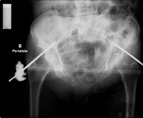 1. Разрыв лона, внебрюшинный разрыв пузыря с отрывом его от уретры у 26 летнего бульдозериста. Оперирован экстренно: ушивание пузыря, дренирование пузыря через эпицистостому (урологи), фиксация лона пластиной , дренирование околопузырной клетчатки двумя дренажами (травматологи). Как оказалось, шов пузыря был несостоятелен и на 3-и сутки больной был переведен в урологический стационар, где было еще две ревизии пузыря, вскрытие мочевого затека на бедре... В общем, пластин купалась в моче, но функцию свою выполняла. Через 8 месяцев ездил к урологам: я удалил пластину, а они занимались пластикой уретры. Все это время эпицистостома функционировала рядом с пластиной.