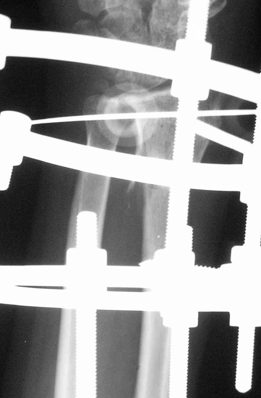 если восстановить связку не представляется возможным, фиксация 2 спицами.