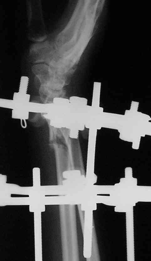 Как насчет наложения шарнирно-дистракционного аппарата на кисть-предплечье с последующими принудительными движениями?