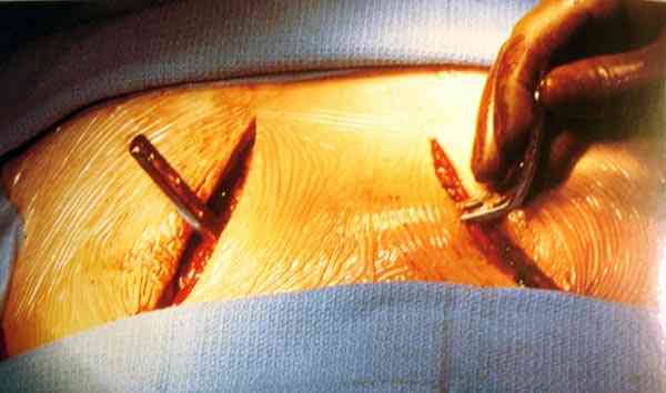 публикаций. Поэтому кольца заменяем ретракторами бедра, а иногда приходится применить двойной ретрактор.