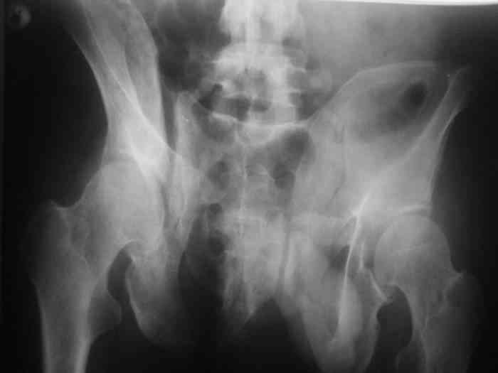 Здравствуйте, уважаемые коллеги. Ситуация такая. Мужчина 50 лет, невысокий, худой. Перелом костей таза пять месяцев назад. Пришел на костылях. В поисках адекватной помощи в краевых больницах был "переадресован" не ближе чем как в Курган и Москву. Денех естессно нет + семейные неурядицы в связи с приобретением статуса инвалида. Ехать, после хождений по мукам, теперь никуда не хочет. Готов на оперативное лечение в нашем отделении.Больной стабильный. Неврологического дефицита нет. Функции тазовых органов в норме.