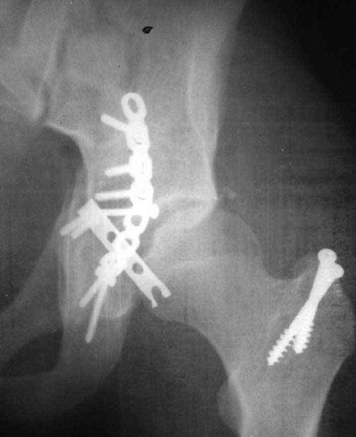Dear Friends This is a 20 year old man who had an irreducible fracture dislocation of the left acetabulum, associated transverse + posterior wall type, operated nearly 2 weeks following the trauma. I am confident that I left no intraarticular fragments. Could the comminution in the anterior wall visible on CT be responsible for this? I am planning to fix his concomitant tibia fracture within 3 days, and in the process perform an examination under anaesthesia. If the ROM is good, I may leave him alone. What do you think? I am sending the x ray and CT in 3 mails If anyone would like better quality but larger images of the X ray and CT I can send them to their personal addresses. Dr Abdelsalam EID M.D., AFSA (Paris V) AO Fellow Lecturer of Orthopedic Surgery Faculty of Medicine, Zagazig University, Egypt. < | >