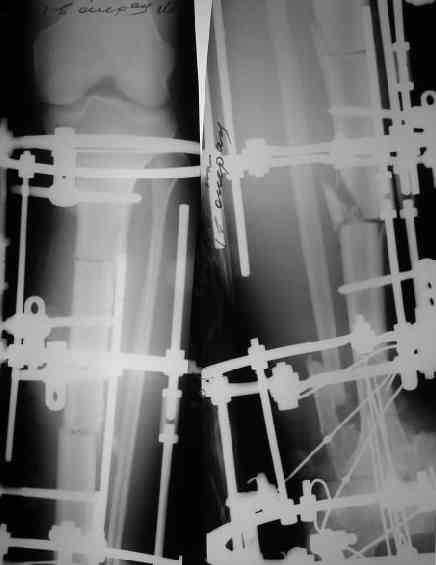 Нижняя остеотомия получилась грубовато. От этого регенерат там будет, наверно, похуже. И если бы он был только один, ждать перестройки пришлось бы даже боюсь предположить сколько.