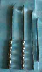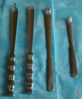 Операцию Путти-Скальетти, в докомпьютерную эру, делал два-три раза "классически". Потом, с увлечением малоинвазивными доступами, изменил. Крыло подвздошной кости не трогаю. На картинке мои "лопатки" для доступа. Рядом, для сравнения, стандартная Буяльского. Масштаб для показанных инструментов 1:1,5.