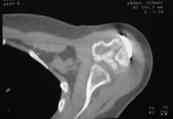 Уважаемые коллеги,На консультативный прием обратилась женщина 42 лет, получившая 1.04.2007 бытовую травму: В момент осмотра: нормостеническая конституция, по передней поверхности плечевого сустава – рубец. Рука в положении приведения. Отведение не более 10 град, дальнейшие движения с лопаткой до 20-25 град. Амплитуда сгибания-разгибания 10-15 град. Ротация отсутствует. Пальпаторно - выраженная болезненность над суставом, особенно в проекции клювовидного отростка. При попытках пассивных движений – боль. Рентгенограммы и результаты КТ приложены(b2(3)_xr.jpg, b1(6)_ct.jpg). Диагноз: неправильно сросшийся в условиях накостного остеосинтеза оскольчатый перелом головки левой плечевой кости (11-С3.2), асептический некроз головки плечевой кости, смешанная артро-миогенная контрактура левого плечевого сустава; демиелинизирующая нейропатия левого локтевого нерва. До травмы пациентка вела активный образ жизни, к которому хотела бы вернуться и теперь. Анализ ситуации позволяет считать, что основными причинами контрактуры являются неправильная репозиция фрагментов головки (разворот кверху и кзади), асептический некроз головки плечевой кости (отчетливое склерозирование на СТ). Альтернативные предложения для лечения (в порядке убывания вероятности успеха): 1. Удаление металлоконструкции, эндопротезирование. 2. Сохранение металлоконструкции с удалением выступающих за пределы головки винтов, релиз сустава, заполнение дефекта (b5_ct.jpg) на стыке метафиза и головки аутотрансплантатом для устранения «триггера», ранняя реабилитация. 3. Удаление металлоконструкции, релиз, ранняя реабилитация. С благодарностью примем критику предложенного плана и Ваши предложения. С уважением к сообществу, Г. Голубев, ортопедическое отделение МЛПУЗ «Городская больница №1 им. Н.А. Семашко», г. Ростов-на-Дону < | >