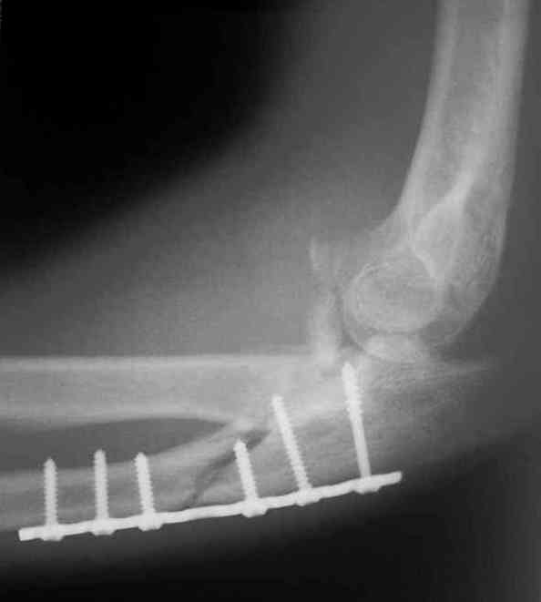 Был выполнен МОС локтевой пластиной,