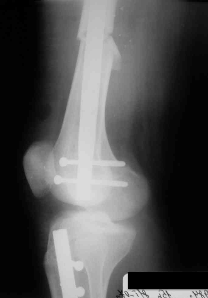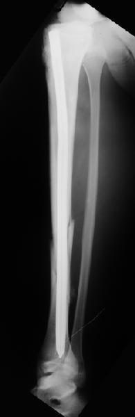OBJECTIVE: To report the results of using the expandable nailing system in the treatment of femoral and tibial shaft fractures. DESIGN: Prospective, cohort series. SETTING: Two level-1 university trauma centers. PARTICIPANTS: Forty-eight patients with acute, traumatic diaphyseal fractures of the tibia or femur. INTERVENTION: Internal fixation of lower extremity long bone fractures using expandable intramedullary nailing. MAIN OUTCOME MEASUREMENTS: Perioperative complications and time to healing. RESULTS: Forty-nine long bone fractures were treated: 22 femoral fractures (OTA classification: 4 type A1, 6 A2, 7 A3, 1 B1, and 4 B2) and 27 tibial fractures (OTA classification: 4 type A1, 11 A2, 9 A3, 0 B1, and 3 B2). There were 13 open fractures and 37 closed fractures. Healing occurred in 37 (75%) fractures without additional interventions. There were 2 tibial delayed unions and 1 femoral and 1 tibial nonunion. Five tibial shaft fractures and 6 femoral fractures shortened by 1.0 cm or more postoperatively. In 3 tibias and 4 femurs, shortening occurred after fractures judged to be length-stable became unstable because of fracture propagation during nail expansion. Five tibias and 3 femurs were converted to standard locked nails because of shortening. The average time to healing, excluding nonunion, was 15 weeks in the tibia and 16 weeks in the femur. The expandable nail resulted in an unplanned reoperation in 12 cases (25%). CONCLUSION: We found a high complication rate because of shortening, which was independent of fracture classification. Consequently, we cannot recommend the use of an unlocked, expandable nail in diaphyseal fractures of the femur or tibia.