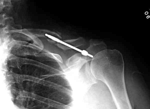Вот уже два месяца больная также продолжает жаловаться на боли, буквально на днях удалили акромиальную часть пластины с специальной пилой с алмазным покрытием для медицинского металла. До сих пор судьба ложного сустава неизвестна....