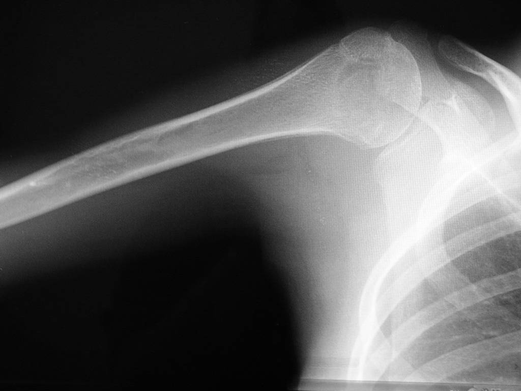 У девочки Lytic lesion в головке плеча. Lesion довольно агресивный. Нет четкой границы. Есть периостальная реакция.