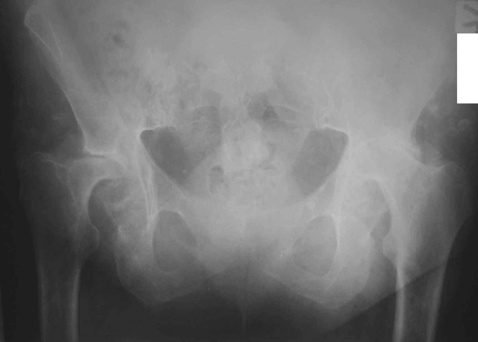 из ДНИИТО Пациентка С., женщина, 50 лет. Ревматоидный полиартрит. Двусторонний ревматоидный артрит тазобедренных суставов.инвалид 1-й гркппы. Принимает гормоны.