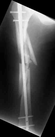 молодй человек 26лет получил С3-перелом правого бедра и легкую черепно мозговую травму (сотрясение головного мозга). Через неделю (противошоковые мереприятия и скелетное вытяжение выполнялось в ЦРБ)оперирован: БИОС бедра стержнем СнМ, Польша. Выписан со швами на амбулаторное лечение по месту жительства в г. Ижевск.Через 1месяц главным врачом больницы, со слов пациента, предложен реостеосинтез пластиной "соберем кость".