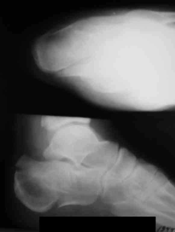 Я думаю, что для начала нужно выполнить КТ пяточной кости и определиться с границами полости. Не исключено, что отрывной перелом верхнего полюса бугра носит патологический характер (верхняя стенка кисты).