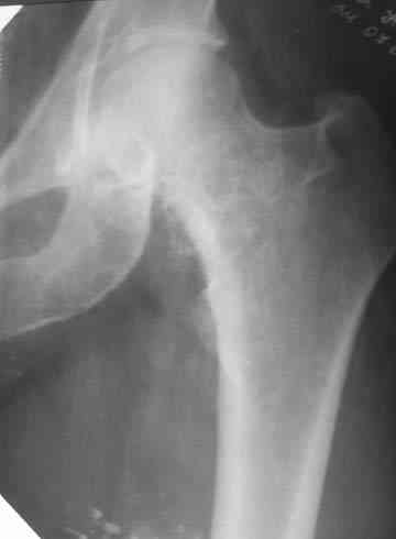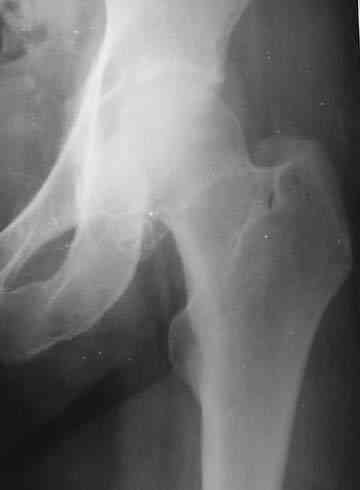 из Екатеринбургский Медицинский Центр Пациентка И., 1952 года рождения. При первом поступлении пациентка предъявляла жалобы на резкую боль в левом тазобедренном суставе, возникающую при движении. Боль постепенно усиливалась в течении последних 2 лет. Лечилась амбулаторно у невролога по месту жительства с диагнозом остеохондроз поясничного отдела позвоночника, корешковый синдром. В общих и биохимических анализах крови изменений не отмечалось, ревматоидный фактор (РФ), С-реактивный белок – в пределах нормы. Рентгенологическое исследование. В прямой и боковой проекции левого тазjбедренного сустава отмечается уплотнение крыши вертлужной впадины. В мягких тканях определяются округлой формы участки неравномерного обызвествления. Заключение. ДОА тазобедренного сустава. Хондроматоз слева в мягких тканях. Клиника. Видимых деформаций в области тазобедренного сустава нет. Ограничено отведение в левом тазобедренном суставе из-за болей до 20º. На основании клинических и лабораторных показателей был поставлен диагноз "Хондроматоз левого тазобедренного сустава". После стандартного предоперационного обследования выполнена диагностическая артроскопия тазобедренного сустава – обнаружены свободно лежащие внутрисуставные хондральные тела > 2 см в диаметре, хондромаляция хряща головки бедренной кости II степени. Выполнена боковая артротомия, внутрисуставные тела удалены, синовиальная оболочка частично резецирована. Послеоперационное течение – без осложнений. Швы сняты в срок, заживление первичным натяжением. Назначен курс лечебной физкультуры. Учитывая наличие рентгенологических признаков коксартроза, проведен курс внутрисуставной вискосуплиментарной терапии препаратами 1% гиалуроновой кислоты № 2. Осмотр через 1 месяц после оперативного лечения. Жалоб на боль при ходьбе нет, движения в полном объеме. Рекомендовано динамическое наблюдение раз в полгода и контрольная рентгенография через год