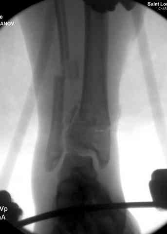 структуральными элементами невозможно предохраниться от посттравматической деформации. Латеральная колонна удерживается малоберцовой поэтому голень деформируется в варус.
