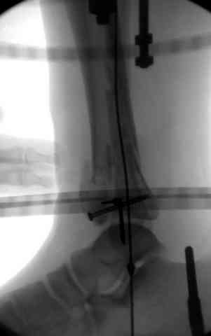 Первичная пластина или интрамедуллярный фиксатор на малоберцовую зависит от характера перелома, косые и многооскольчатые пластинами, а поперечных можно интрамедуллярными фиксаторами. Восстановленная длина малоберцовой служит ориентиром и помогает определению высоты большеберцовой во время восстановления.