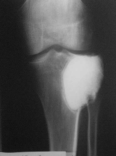 Субхондральное эндопротезирование костным цементом при доброкачественных опухолях давно используется в институте им. Вредена. Редко бывают рецидивы (костный цемент, полимеризуясь, нагревается до 70 градусов). Сроки наблюдений благополучного исхода более 20лет.